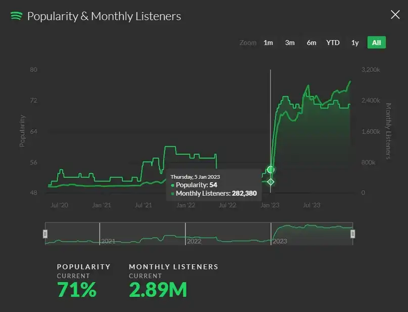 Sleep Token вошли в этот год с 282 тысячами месячных слушателей, а выходят из него с аудиторией, помноженной на десять. Буквально по щелчку пальца они превратились из умеренно популярного, но весьма нишевого проекта в группу, способную организовать хэдлайн-тур с солдаутами и перепродажами билетов с рук скальперов по 700 баксов. В любом другом таймлайне это бы можно было списать на что угодно, вплоть до великого продюсерского заговора. Но в нашей реальности всё оказалось гораздо проще (лучше это, или хуже, вопрос всё ещё открытый, но сегодня не об этом): звёзды сошлись в нужном порядке, и тикток среагировал оперативно, когда Sleep Token выпустили свой главный боевик года. И понеслась…